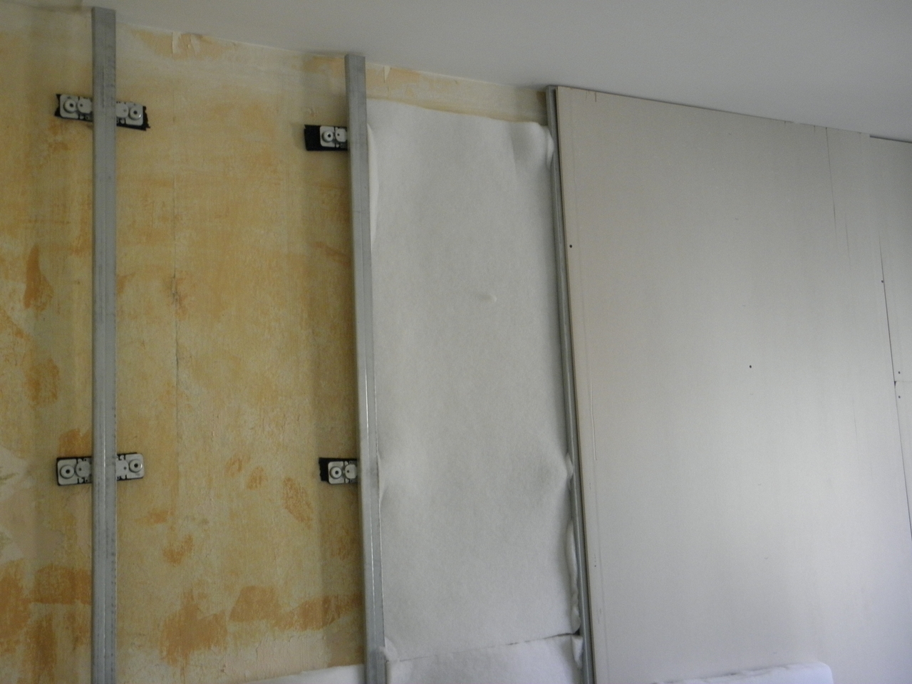 Допълнение на шумоизолация (абсорбираща обработка) в стени и окачени тавани от гипсокартон.