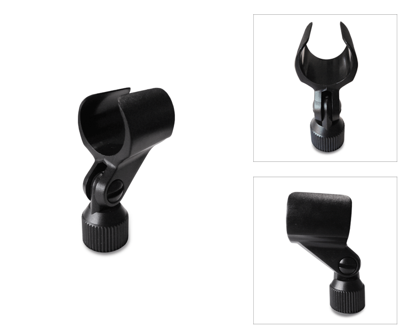 Описание: Стандартен държач за микрофон с резба 5/8″. Съвместим е със стойки с резба 3/8” с помощта на адаптер RC-06, който не е включен.