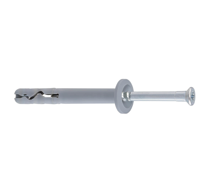 При забиване на пирона дюбелът се разширява в основата си и осигурява силно и стабилно закрепване. Изработен е от висококачествен полиетилен (PE), а пиронът е от поцинкована въглеродна стомана.
