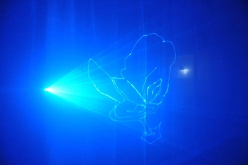 Характеристики: Анимиращ син лазер с високоскоростен оптичен скенер, създаващ анимирани графики, 256 разновидности на синият лъч , комбиниращи се в различни графики .Притежаващ функциите: Уникален нулиращ ефект , Стробо ефект , ротация , движение на ефекта , вълнист ефект на лъча , зумиране (+/-)