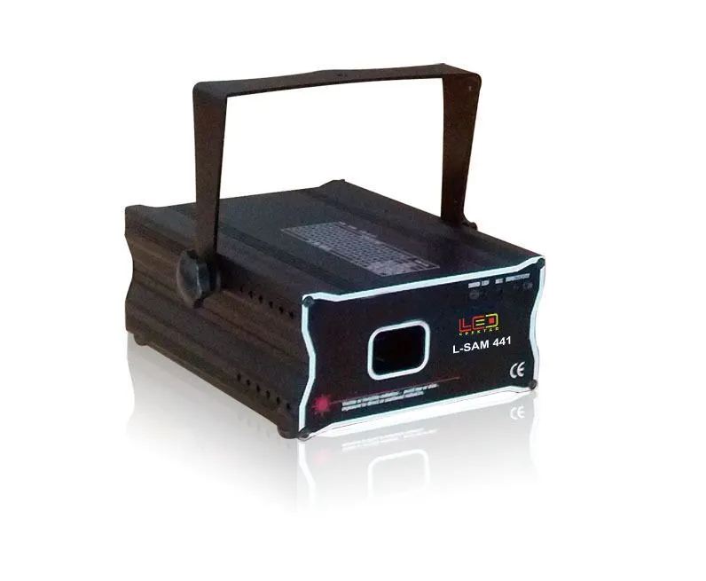Характеристики: Лазерните лъчи се контролират чрез звук ,усъвършенствани програми , повече от 50 лазерни мотиви, над 200 лазерни ефекта . Устройството ще се изключи , когато музиката спре.