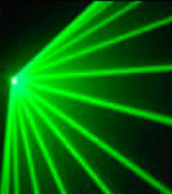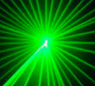 Eдноцветен лазер, който перфектно прожектира зелено (по желание на клиента - червено, зелено, пурпурно, розово, индиго) абсолютно пълноцветно. Ако е комбиниран в множество, ефектът е още по внушителен. Декориран на навес на бар, може да осветява дансинга, също така е подходящ за приложение на театрални сцени, партита и друг тип тържества.