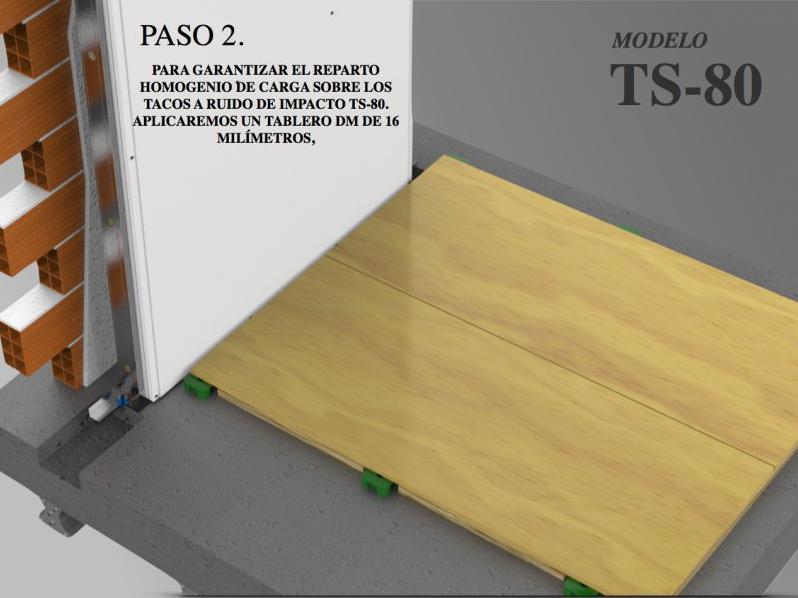 Описание: TS 80 е гъвкава гумена подложка, предназначена за монтаж при плаващ под с цел да смекчи вибрациите от въздействието на източника на шум. Продукт от изключително високо качество комбиниран с антиоксиданти като MEGOL. Поради ергономичния си дизайн превръща вибрационната енергия в топлинна енергия в резултат на вътрешно затихване. Тази нова гама изолатори е проектирана да се премахне или намали предаването на вибрации от шок, удари или вибро-механична енергия от оборудване, генериране на шум над прага от звуковото поле (20Hz). Подложката има избор на поведение в преходно операционен режим, от 1000 оборота в минута, в стабилно състояние.
