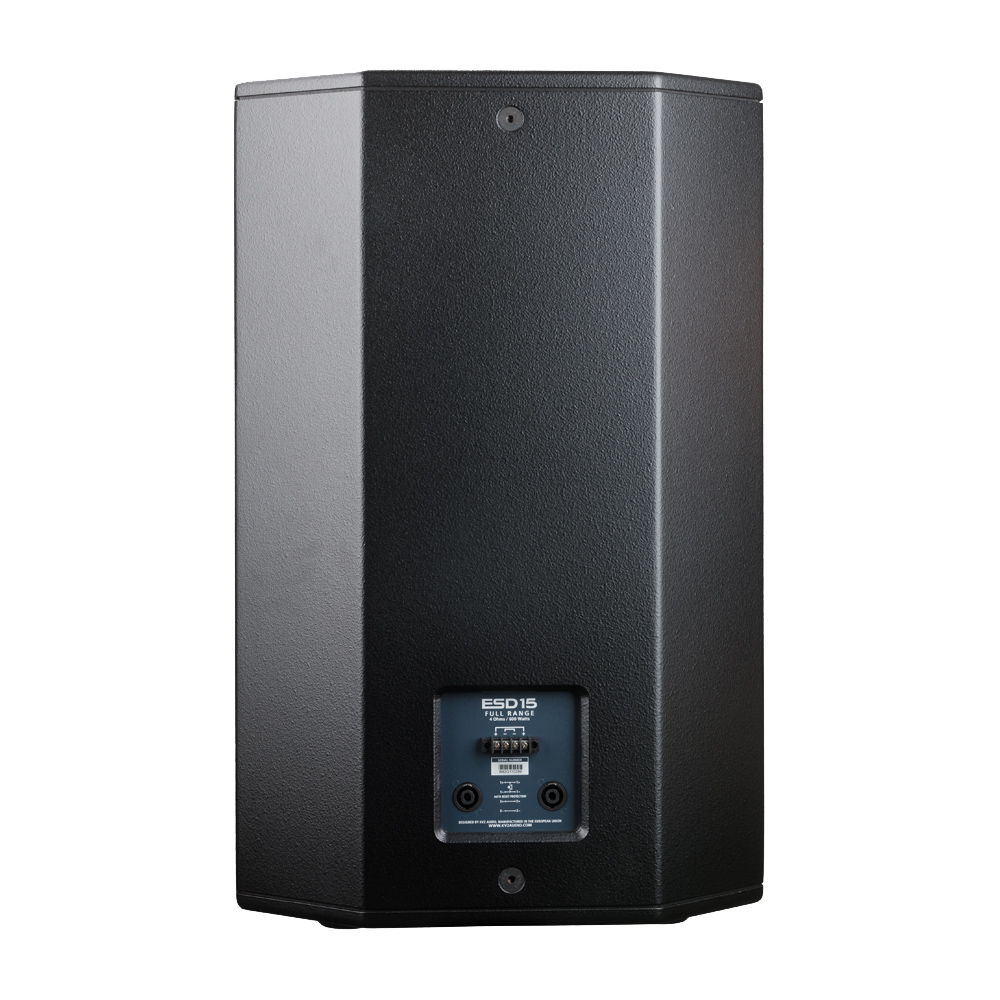 Новият ESD15 включва уникален коаксиален 15-инчов преобразувател с 1,75-инчов компресионен драйвер от нитрид-титаний-неодим върху широка дисперсия 80 x 60 градуса. Докато повечето коаксиални високоговорители ще се опитат да покрият пълната честотна характеристика, коаксиалният драйвер на ESD15 покрива само басите и високите, оставяйки всички важни средни честоти на 6" неодимов високоговорител, монтиран на голям 80 x 60 градусова хорна. Това разрешава проблема с 15" драйвера, който се опитва и не успява да възпроизведе средни честоти, често срещан проблем при конвенционалните коаксиални дизайни. Уникалният дизайн на ESD15 осигурява изключително плоско възпроизвеждане на пълен диапазон от компактен, но мощен пакет, който превъзхожда високоговорителите два пъти повече от размера, теглото и цената.