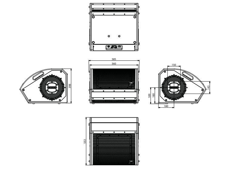 - Компактен, клиновиден дизайн на корпуса, специално разработен за използване в приложения за сценични монитори