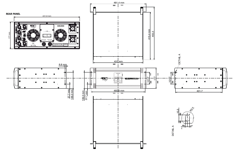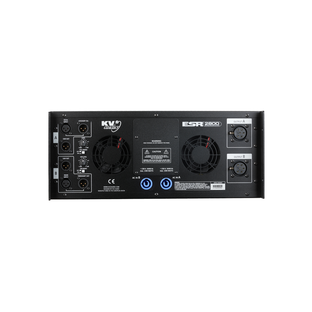 ESR2800 е трипосочна, активна система за управление и усилване, специално проектирана за KV2 Audio ESR серията високоговорители с пълна гама. Той съдържа всички функции за обработка на сигнала, усилване и кросоувър на събуфера, ако е необходимо, като се използва външен усилвател на събуфера. ESR2800 захранва ESR212. Всеки модул включва шест усилвателя, състоящи се от два 100-ватови, клас AB, push pull, усилвател с ниска интермодулация за високи честоти, два 200-ватови, клас AB, push pull, дизайн с ниска интермодулация за средни честоти и два 1000-ватови, високоефективни , усилватели с технология за превключване на режим на ток за бас. Стерео конфигурацията ESR2800 захранва съответно два ESR кабинета.