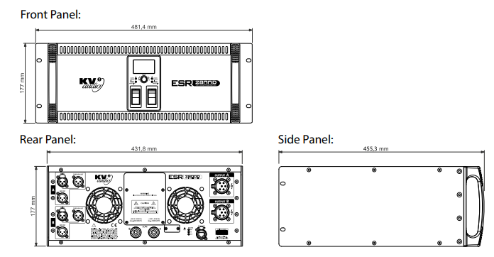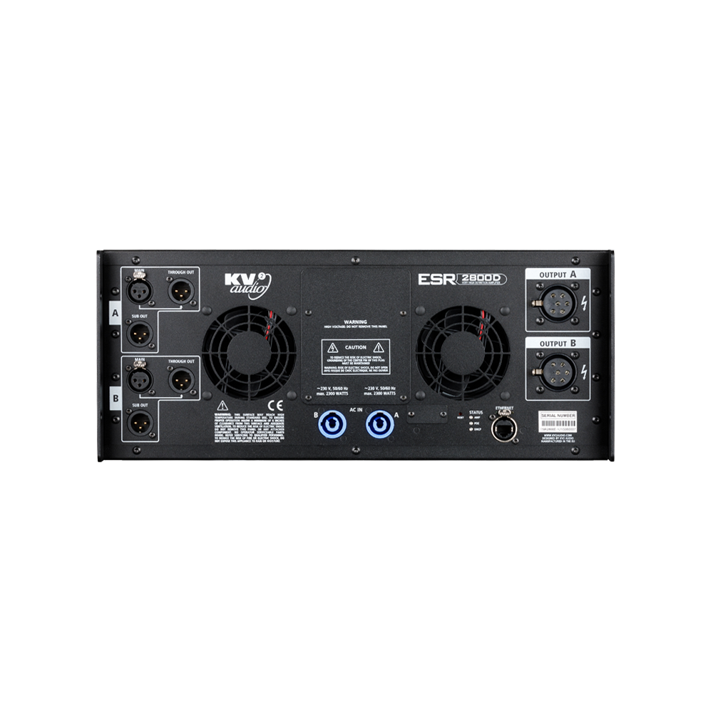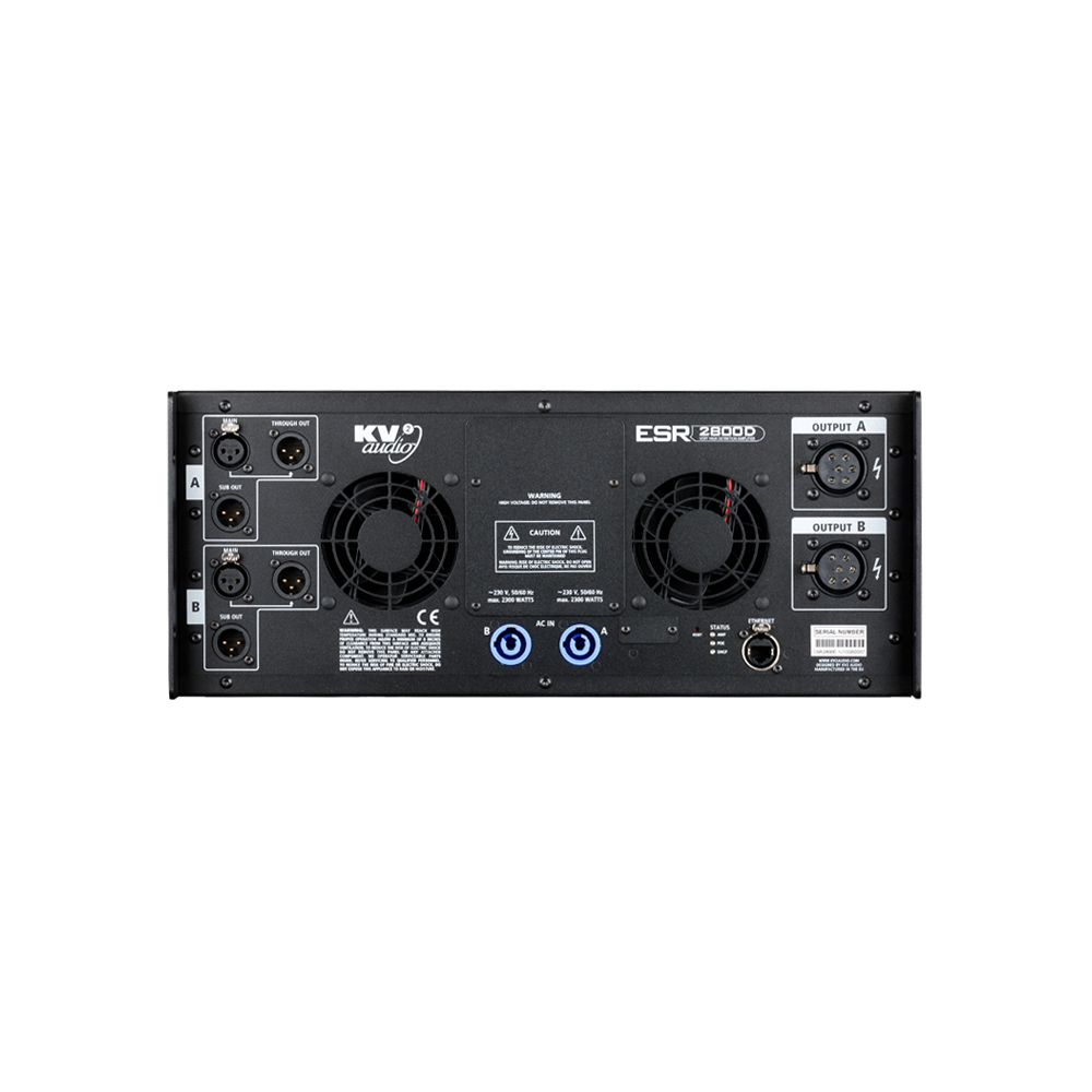 ESR2800D захранва ESR212.Всеки модул включва шест усилвателя, състоящи се от два 100-ватови, клас AB, push pull, усилвател с ниска интермодулация за високи честоти, два 200-ватови, клас AB, push pull, дизайн с ниска интермодулация за средни честоти и два 1000-ватови, високоефективни, усилватели с технология за превключване на режим на ток за бас.Стерео конфигурацията ESR2800D захранва съответно два ESR кабинета.
