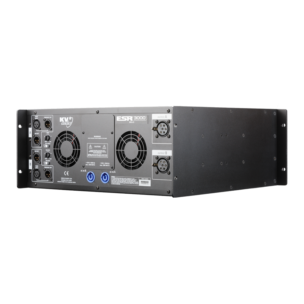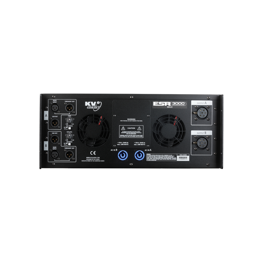 ESR3000MkII е трипосочна, активна система за управление и усилване, специално проектирана за KV2 Audio ESR серията високоговорители с пълна гама.В него се помещава цялата обработка и усилване на сигнали, както и осигуряване на функция за контрол и кросоувър, външен шкаф за субуфер, ако е необходимо, като се използва външен усилвател.ESR3000MkII захранва ESR215MkII.Всеки модул включва шест усилвателя, състоящи се от два 100-ватови, клас AB, push pull, усилвател с ниска интермодулация за високи честоти, два 200-ватови, клас AB, push pull, дизайн с ниска интермодулация за средни честоти и два 1000-ватови, високиефективен усилвател с технология за превключване на режим на ток за бас.Стерео конфигурацията ESR3000MkII захранва съответно два ESR кабинета.