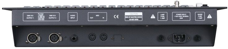 Описание: Професионален DMX контролер за управление на интелигентно сценично осветление. Компактен и интуитивен, той е проектиран за живи шоута, клубове, концерти и театрални постановки. Управлява до 512 DMX канала чрез 2 оптично изолирани DMX изхода, което осигурява надеждна и безшумна сигнална линия. Поддържа до 80 устройства едновременно, с максимум 40 канала на устройство.