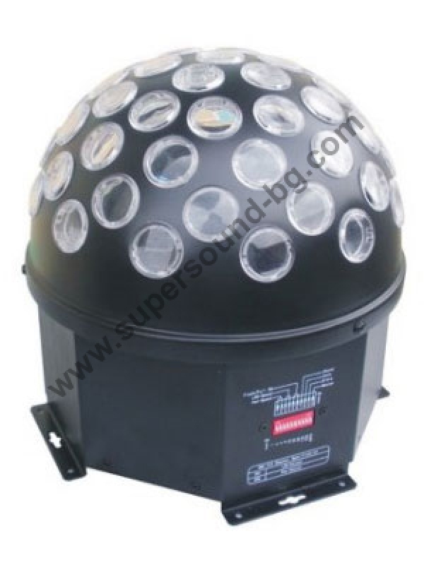 Описание: Много мощен, привличащи погледа, LED ефект. Изключително брилянтни цветове, по-динамични и ефекти в сравнение с ефектите с халогенни лампи. LED magic ball използва светодиоди с много дълъг живот и ниска консумация на енергия. Разполага с отлични вградени автоматично запаметени програми. Отличен централен ефект. Освен в развлекателния бизнес намира приложение при работа с деца, както и в мулти сензорни стаи, предназначени за хора, страдащи от синдрома на Даун.