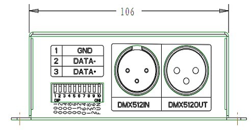 Описание: DMX512 декодер може да управлява LED продукти със PWM и IIC изходен сигнал. Потребителят може да избира 1-6 изходни канала, с всеки от които може да се осъществява контрол от 256 нива. Когато декодерът управлява с IIC изходен сигнал LED продукти - те трябва да имат чипове 2801, 6803, D705, D709, UCS6909. Когато е съвместим с SD контролер може да управлява 170 пиксела, но тогава декодерът работи като едноканален. DMX адрес може да се настрои от DIP превключвател на декодера. Може да управлява едноцветни, двуцветни, RGB LED продукти. Подходящ за LED модул, LED пиксели, LED ленти, LED-бар и др.