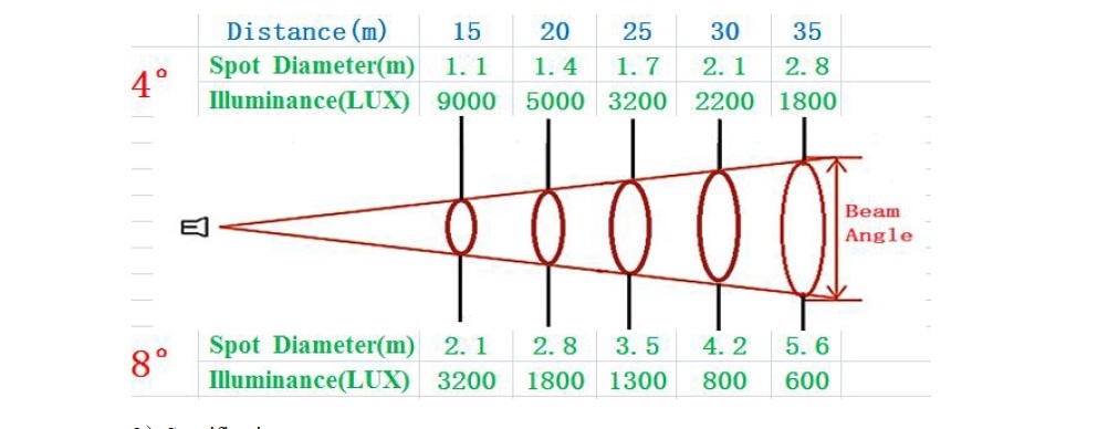 Оптималното разстояние за осветяване е 15 метра ~ 35 метра.