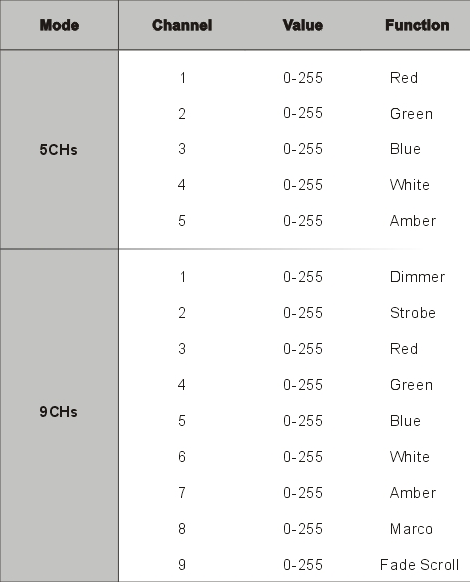 Контролен режим: Master-Slave синхронизация, DMX512 контрол и автоматичен контрол.