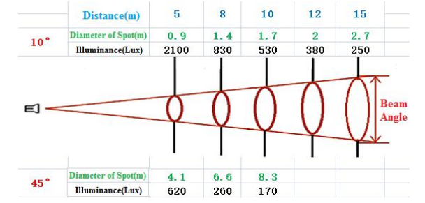 Ъгъл на лъча: 10~45°