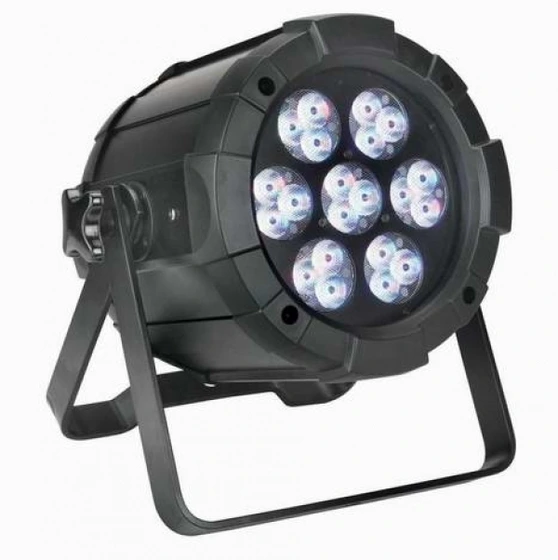 Описание: Компактен LED прожектор с 21бр x (3W in 1) светодиоди с фиксиран тесен лъч. Нежеланите сенки са напълно изчезнали, като смесването на цветовете е перфектно и равномерно дори и при къси разтояния. Може да се поставя под всякакъв ъгъл. Съвместим по DMX плюс вградени автоматизирани програми, има опции за димиране. Менюто е с LED дисплей със защита (парола). Корпуса е алуминиев, които позволява да се поставят и театрални капаци. Идеален за наемане от рентал компании. Перфектен като съотношение: цена/качество/гаранция.