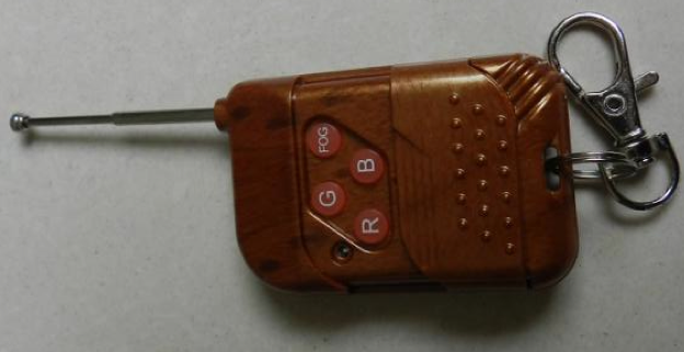 1.Поставете приемника за безжичен контролер в машината. Дистанционното има бутони R (червен цвят), G (зелен цвят), B (син цвят) и FOG.
