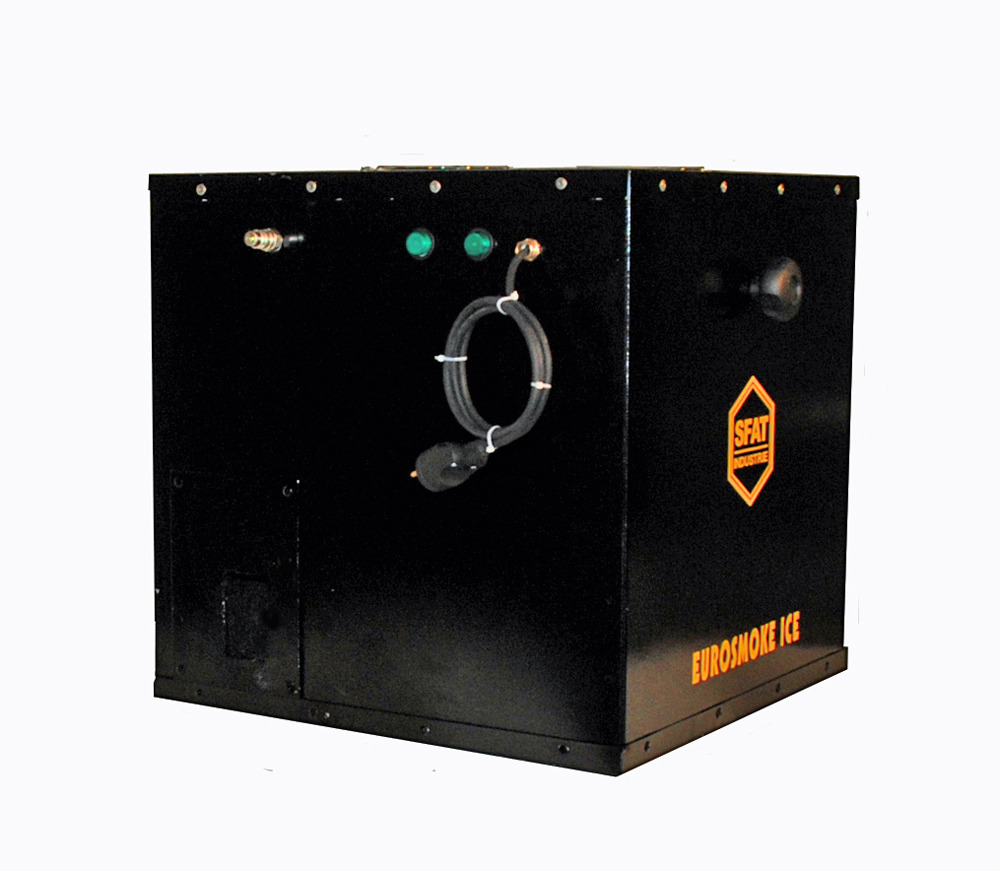 Описание: Euromoke Ice е система която произвежда впечатляващо количество голям обем тежък, нисък качествен пушек за продължително време.Ефекта е подходящ за телевизионни предавания, концерти, събития, нощен клуб и рентал събития. Публиката има усещането, че облаците са им в краката! Използва CO2 технология, вграден вентилатор и всички видове пушек машини (независимо от търговската марка). Боядисана прахово в черен цвят, има части като болтове от неръждаема стомана.