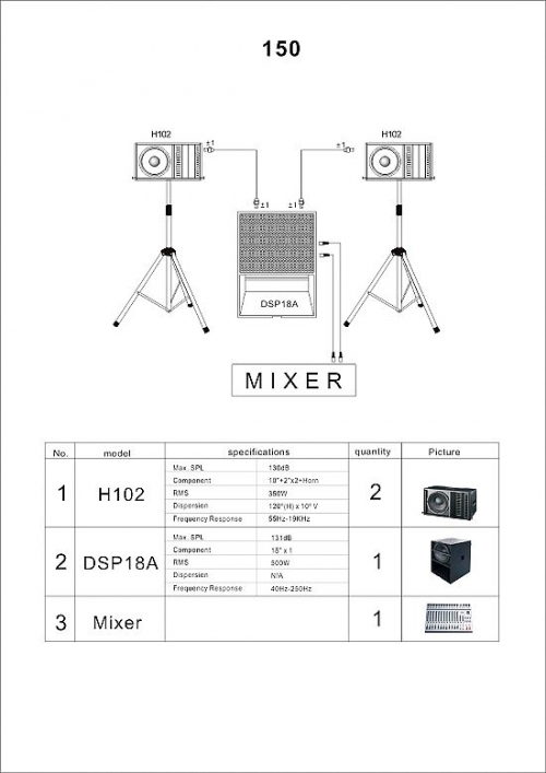 Описание: T2 е лека мобилна система, състояща се от активен 18 "SUB (DSP18A W / вграден в DSP) плюс 2 сателитни тонколони (H102) - е комбиниран с 10" бас и 2 Celestion високоговорители. Mono, Stereo и Array режими са възможни. H102 може да бъде поставена в основата на DSP18A, за да стане системата компактна. Подходяща е за малки до средни мобилни приложения.