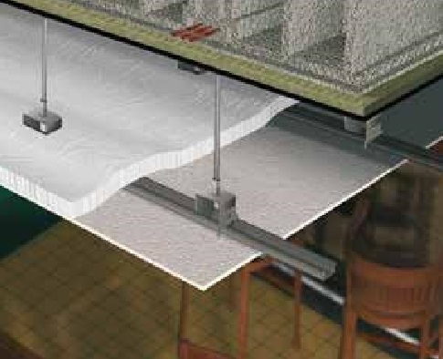 Системата се изготвя с панели ChovANAPA 6 cm PANEL 40 (акустична абсорбираща минерална вата), поставени върху гипсокартона.