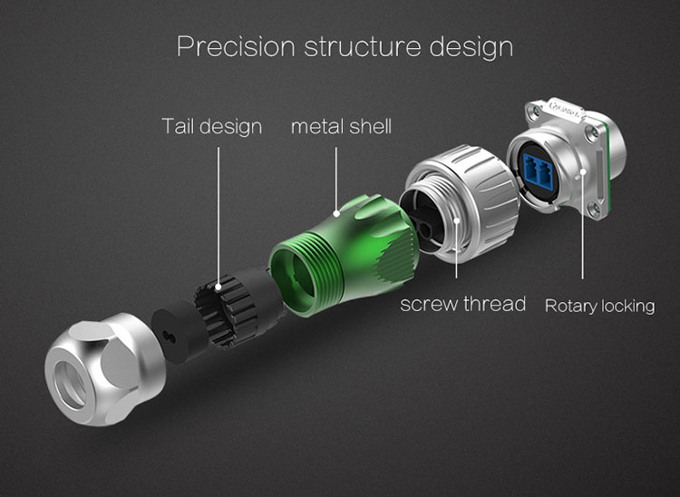 Описание: Високоефективният конектор за оптичен кабел с байонетна връзка е предназначен за сигурно предаване на сигнала по оптичен кабел. IP67 LC дуплекс конектора има устойчив на корозия метален корпус в серията DH размер 24. Прецизният конектор за оптичен кабел е за бързо и сигурно предаване на данни в индустриални среди с дължина 78 мм. Серията DH използва уникалния дизайн на пружината, стандартен слот, изработен от легиран материал, непрекъснат метод на фиксиране във външното уплътнение и нов външен вид,който отговаря на изискванията за висококачествено приложение. Оптичният конектор е водоустойчив и прахоустойчив според клас на защита IP67. Байонетното свързване осигурява сигурна връзка и предпазва от прекъсвания на данни и сигнал.Конекторите за оптичен кабел имат система за цветно кодиране за бърза идентификация на кабела. Конекторите са устойчиви на температура и налягане.