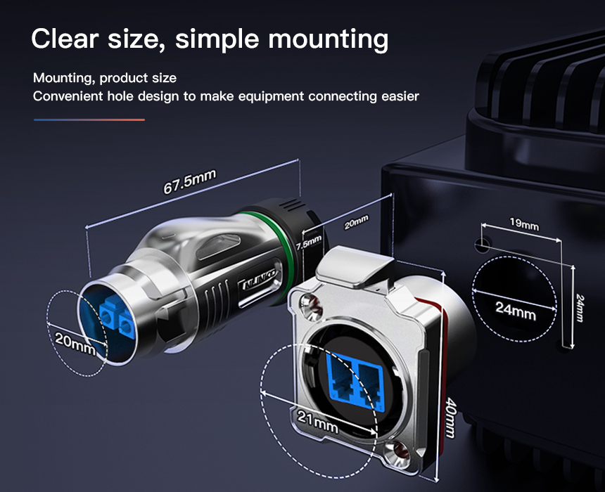 Приложение: Гигабитов Ethernet, Многопортови оптични системи, Сценично оборудване, Комуникационно оборудване, Промишлено оборудване, Контролна комуникационна кутия за данни, Трансфер на данни, Индустриално оборудване, Медицински технологии, Машиностроене, Конструиране на устройства, Мултимедийна инсталация, Системен интегратор, видео техник, звуков инженер, светлинен техник и др.
