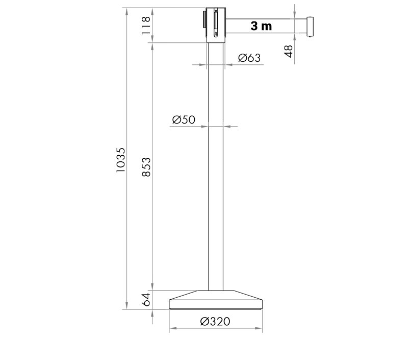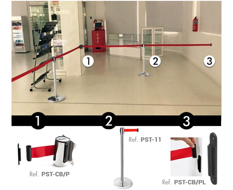 Стълбът PST-12 с 3-метров червен прибиращ се колан и стилен нов дизайн на основата има четирипосочна свързаност; 3 точки за приемане и изходящ колан. Разполага със система за блокиране, която предотвратява неоторизирано премахване на колана.