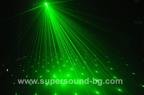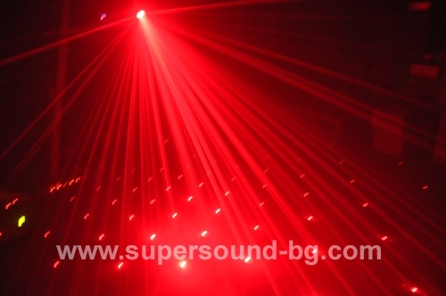 Характеристика: Зелено , червено и жълто мигащ “Moving Head” лазер . Цветовете се разпространяват като матрица , над 1000 лазерни точки разпръснати от отвора ( блендата ) на 40 различни ъгли . С възможност за настройка на скороста на въртене и скороста на Стробо ефекта .