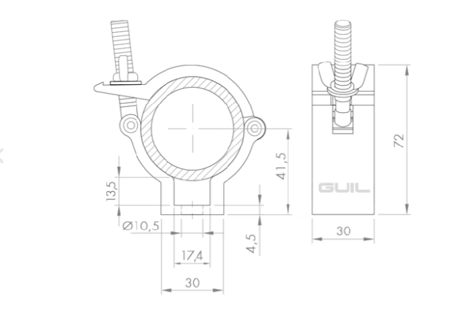 Описание: Лек алуминиев висящ съединител с ушна гайка. Предназначен за използване върху ферми/тръби с външен диаметър от 48 мм до 51 мм. Съединителя за висяща скоба ABZ-20 се доставя в комплект с гайка с ухо, което го прави идеален за окачване на предпазна тел, сапани, вериги и т.н. върху ферма/тръба за поддържане на осветление, видео, аудио и др. Тази практична многофункционална скоба за окачване се използва в много области: развлекателна индустрия, театър, строителство и т.н. Тя съчетава здравина и издръжливост с високо ниво на безопасност, което я прави идеална за задачи, които изискват надежден лек съединител. Може да се използва за други функции, като просто се заменя болтовата гайка с крилчатата гайка или втора скоба (превръщайки я във въртящ се съединител).