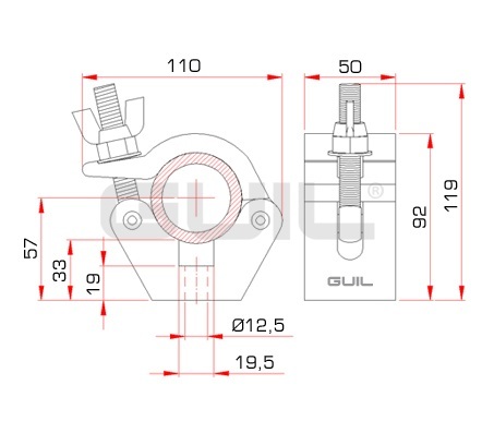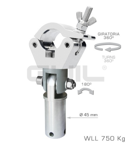Описание: Алумниева стабилизираща скоба с Ø 45 и твърд шарнир.За тръби с Ø 45-52мм.Завърта се на 360º.Скобата съчетава здравина и издръвливост с високо ниво на безопасност.