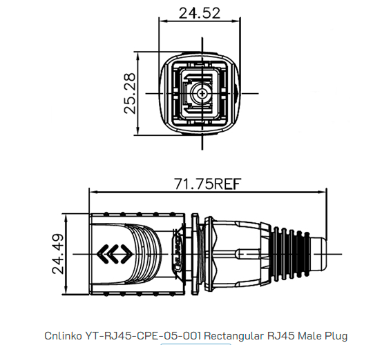 Описание: YT-RJ45-CPE-05-001 е мъжки правоъгълен RJ45 конектор за сигнални приложения. Побира 26-24 AWG кабел. Номинален за 1000V и 1,5 A. Използва се за индустриален Ethernet в аудио оборудване, сценично оборудване, DMX осветление и други мрежови приложения.