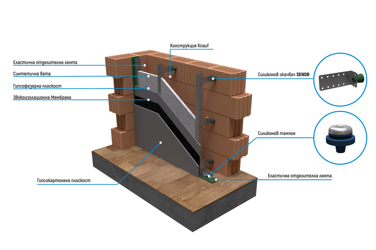 Забележка: Цената е за всички материали за шумоизолация на стена за м². Минимално количество за поръчка от квадратура на стена минимум 12м². В цената не е включен монтажа.