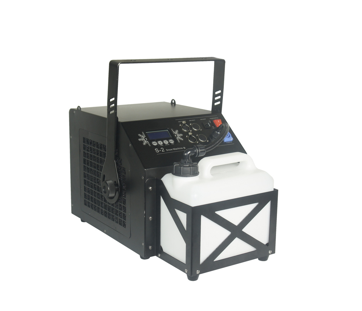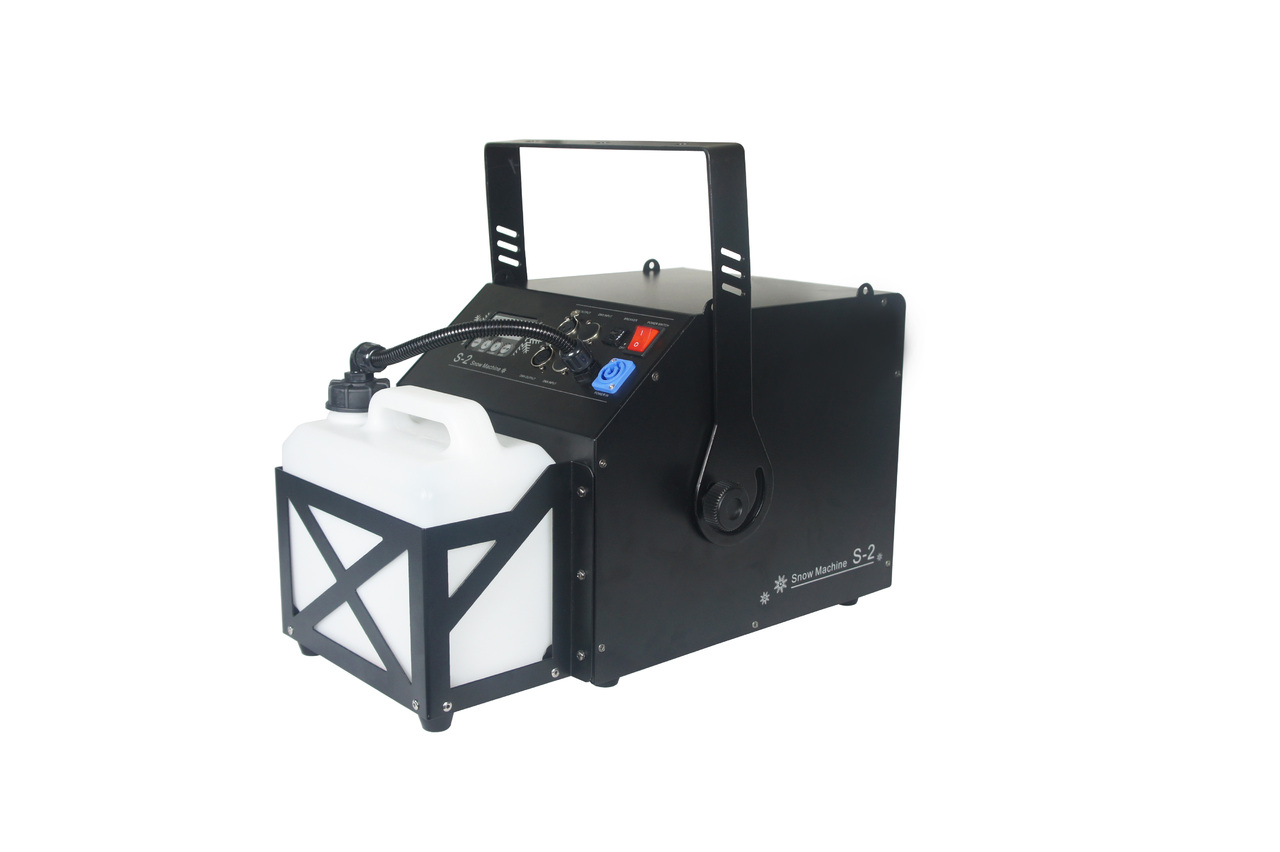 Машината за сняг H-S2 има множество функции на работа, като: таймер, регулация силата на работа, ръчно управление, безжичен контрол, DMX Контрол, сензор за количеството флуид и др. Има опция за оцветяване на снежинките!