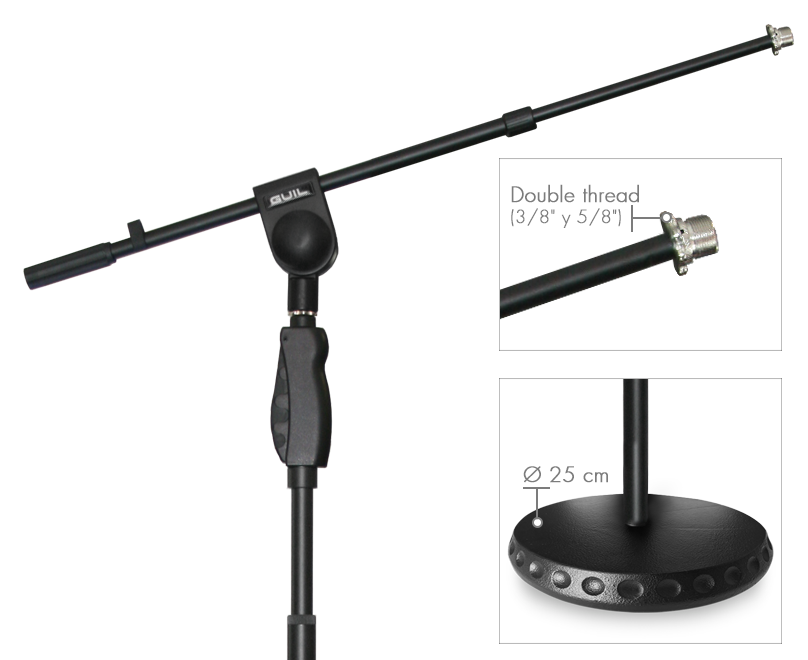 Описание: Издръжлива стойка за микрофон с телескопично рамо и кръгла основа. идеална за концерти, звукозаписни студия, репетиционни. Има специална система за бързо и удобно регулиране на височината с една ръка. Тази стойка за микрофон с референция PM-40/J е произведена от стомана и е завършена с текстурирано черно прахово покритие против надраскване за по-голяма здравина и издръжливост.