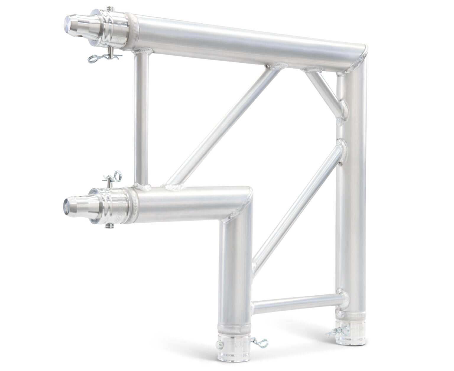 90° ъгъл върху паралелна равнина на ферма с дължина 29 см. Ъгълът е изработен от екструдиран алуминий, сплав EN-AW 6082 T6, заварен TIG за по-голяма безопасност и здравина.