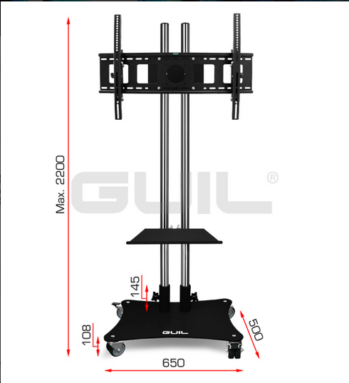 Описание:Професионална мобилна стойка за телевизори от 32 до 65 инча с максимално тегло до 70 кг. Подходяща за всеки екран със стандартен размер на отвора VESA: макс 800 x 500 мм.Мобилна телевизионна количка за плазмени екрани, LCD и LED екрани е регулируема по височина и включва накланяща се стойка и спомагателна поставка за полагане на AV оборудване.Двата му подвижни стълба са изработени от неръждаема стомана,гарантираща максимална издръжливост и устойчивост дори когато стойките се използват на открито (тераси, събития на открито и др.). Интегрирано управление на кабели.Основата с двойни въртящи се колела със спирачки позволява на екрана да се прехвърля от една стая в друга, без да се налага да се демонтира. Тази мобилна стойка има бърз и лесен монтаж с всичкия необходим хардуер.Тази тежкотоварна количка за екран съчетава елегантен дизайн с максимална стабилност и издръжливост.Тя е идеалният вариант за всички професионални приложения: търговски изложения, конгреси, конференции, заседателни зали, класни стаи, семинари, изложби, офиси, търговски центрове и т.н.