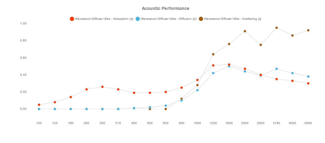 Описание:С дизайна на Wavewood се появява нов дифузьор. Симулирайки последователност QRD и MLS, новият Wavewood Diffusor е идеално решение за тези,които търсят балансирана звукова среда, която едновременно контролира прекомерната енергия в стаята, трептящо ехо и все пак поддържа жив и ярък звук. Той е особено ефективен при третиране на средни и високи честоти.Този панел е изработен от полистирол с висока плътност и покритие от дърво.Идеята е да има по-конкурентоспособен дифузьор с ниско тегло и по-лесно приложение.Той съвпада идеално заедно с обичайния абсорбиращ панел Wavewood, което означава, че можете да комбинирате както абсорбиращите,така и дифузерните версии, без да забележите разлики по отношение на естетиката.
