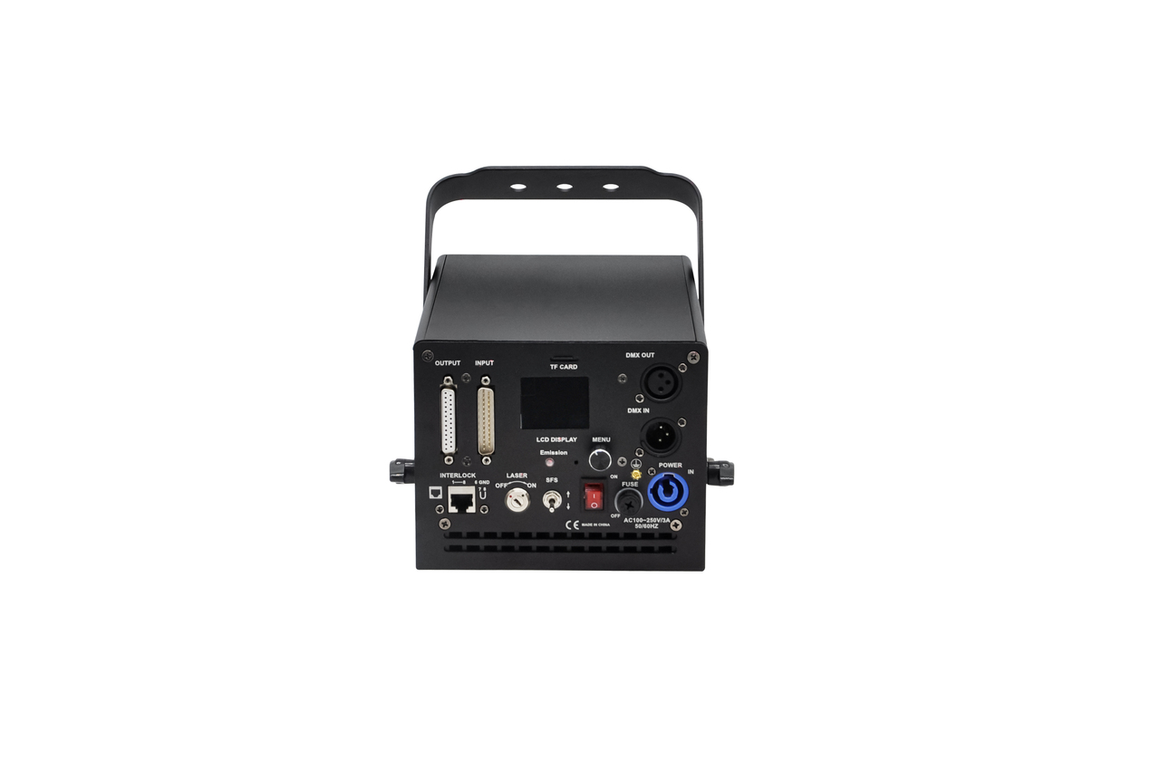 Конфигуриране на безопасност: Система за защита с единичен лъч (може да се включва или изключва; много важно за лазерни светлини с висока мощност), превключвател за включване и изключване на лазера, лазерно дистанционно блокиране.