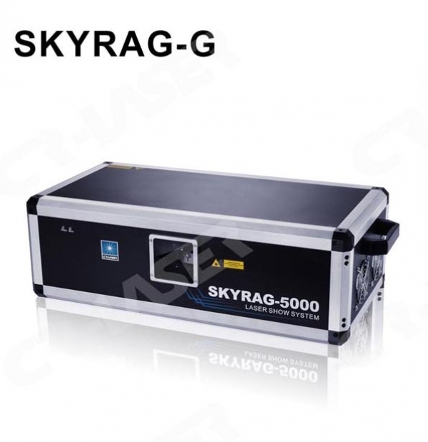 Описание: SKYRAG е професионална система за лазерно шоу. Лазереният източник е създаден от полупроводникови лазерни диоди, който имат двоен контрол на температурата. Диодите имат дълъг живот, висококачесвено и стабилно представяне, и съответстват с ILDA STANDARD. Лазерът има мощни функции отговарящи за нуждите на сцената. Съвместим със лазерните контролери (PHOENIX?or PANGOLIN)и високоскоростен (> 40kpps) скенер с гарантирана мощност.